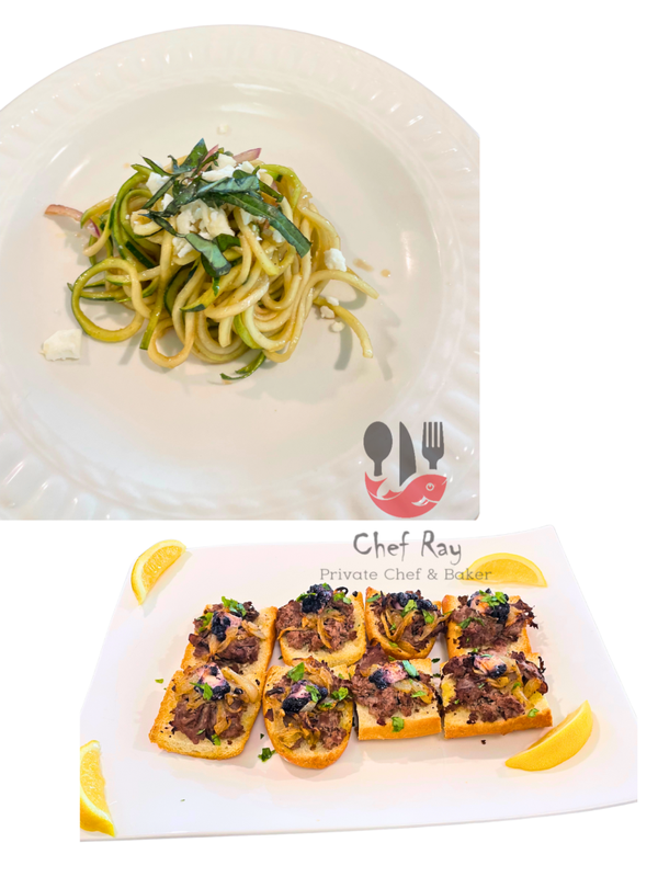 Price is per person. 4 course meal-1 Appetizer, 1 Soup or Salad, 1 Entree-meat,veg,starch, 1 dessert. 5 day minimum booking notice. Plated or family style service. Client provides dishes and or decorations. Price includes food, grocery shopping, and up to 30mi of travel from *starting point*.